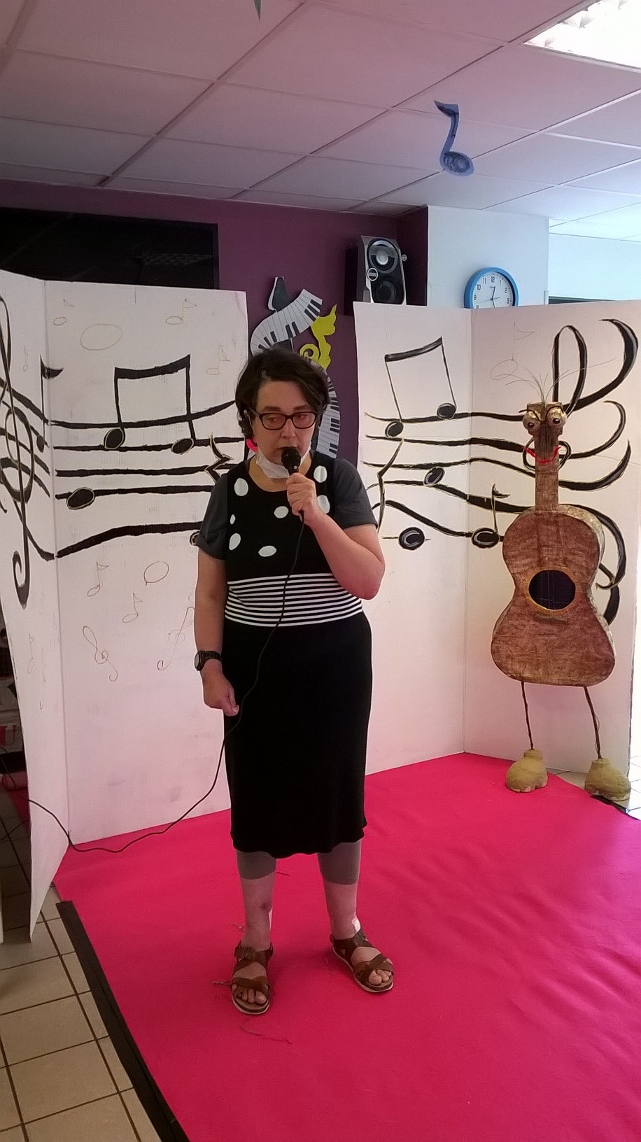 Ce lundi 21 juin, fête de la musique oblige, le CDAIR a dansé sur des rythmes frénétiques. Tout au long de la journée, différentes animations ont égayé les résidents, à commencer par de nombreuses interprétations de la danse du bonheur mise au point par l’atelier sport de Dennis. Les résidents qui le souhaitaient pouvaient interpréter une chanson en karaoké et après un grand repas, l’après-midi s’est transformée en boom!