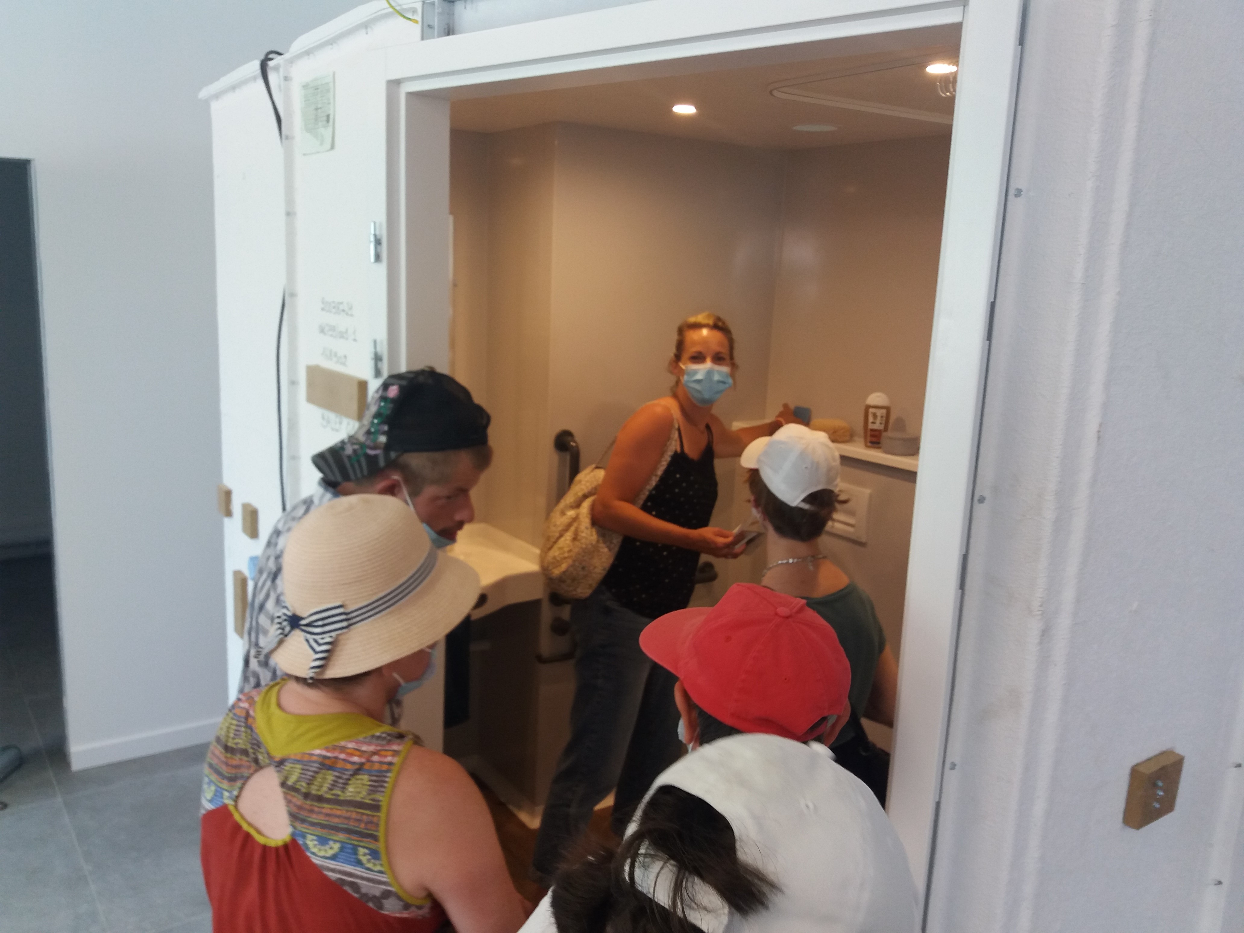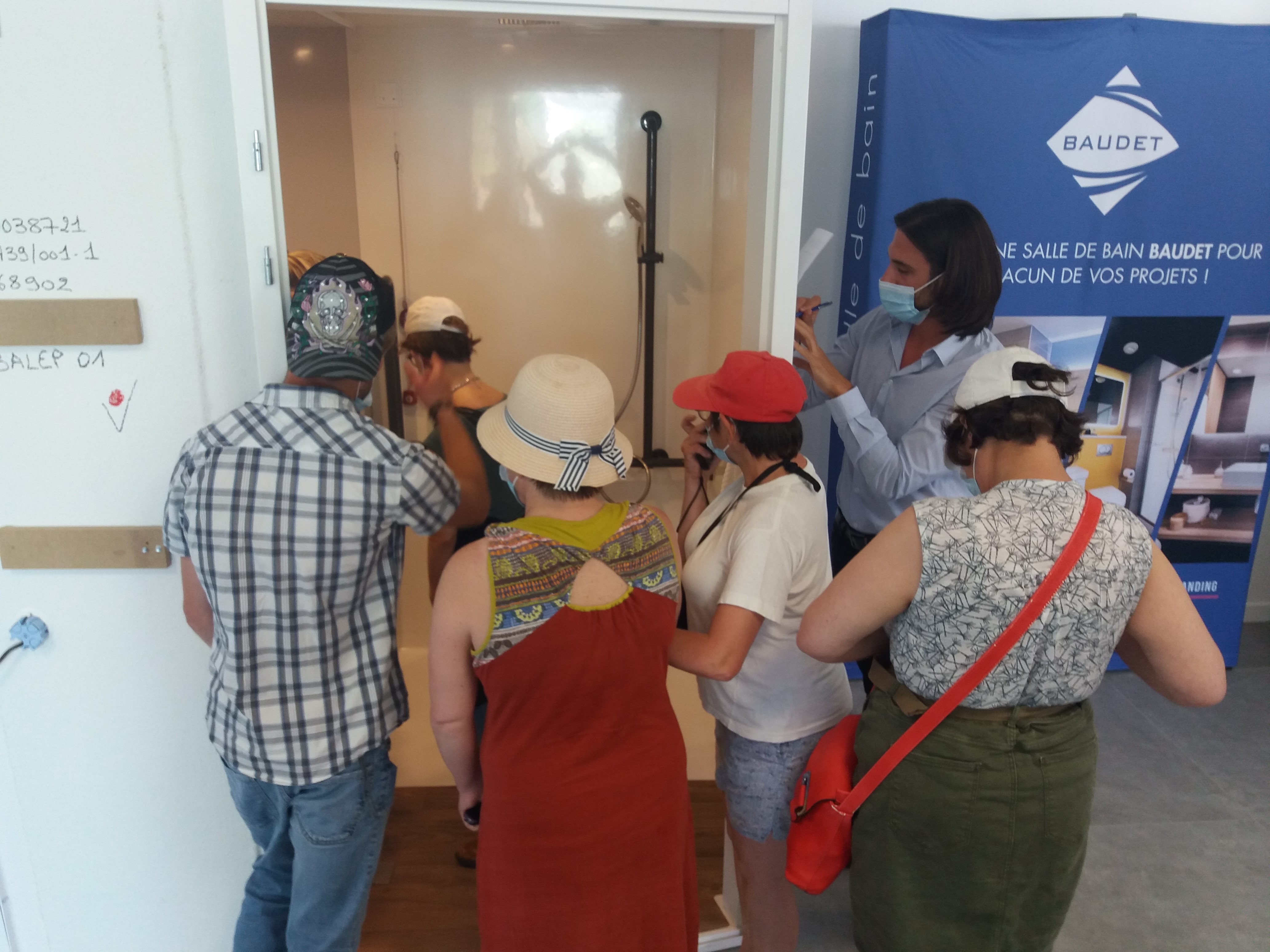 Une nouvelle étape est franchie, celle des salles de bain. Une délégation composée des représentants des résidents et de leurs suppléants, ainsi que de Clémence, Hubert et Patrick s’est rendue sur le site de fabrication en Vendée pour une visite, les futures salles de bain se sont dévoilées et leurs couleurs ont été sélectionnées.